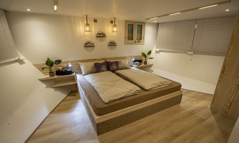 • Unterbringung in einer halben Doppelkabine Unterdeck mit Dusche und WC